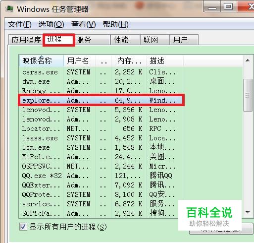 点击进程,找到“explore.exe”。