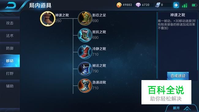 出门装:神速之靴。 出门装出神速之靴是因为作为上单的吕布很可能遇到对面的双人线,有了神速之靴的移速加成,增加了吕布的机动能力,可以让他更好的与敌方的双人线周旋。