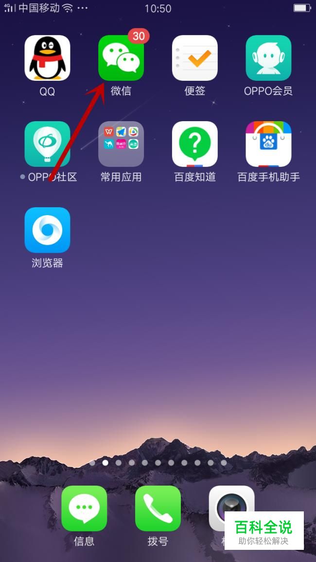 首先我们点击手机桌面上的“微信”图标,登陆微信进入到主界面,如图所示。