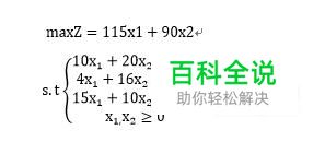 如图,这是我们此次的目标函数和约束条件,其中,变量x1,x2分别表示某公司产品一和产品二的数量,所求目标函数z表示两种产品所产生的利润,我们要求解的就是在几种材料库存有限的情况下如何制造最大利润。