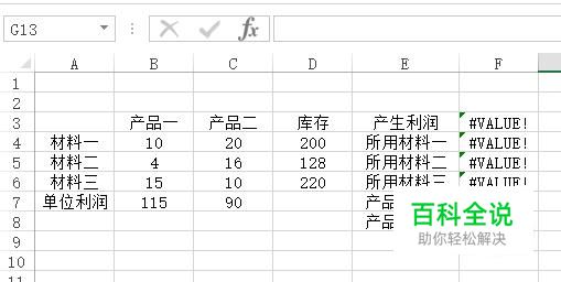 最后,在我们的目标单元格内即会出现所求最优解,同时也会显示对应的产品一和产品二产量。