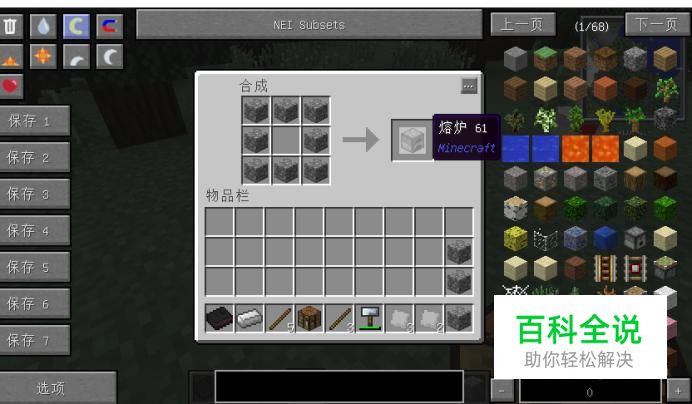 先要准备好圆石,然后用工作台合成一个熔炉。圆石挖矿就可以获得。