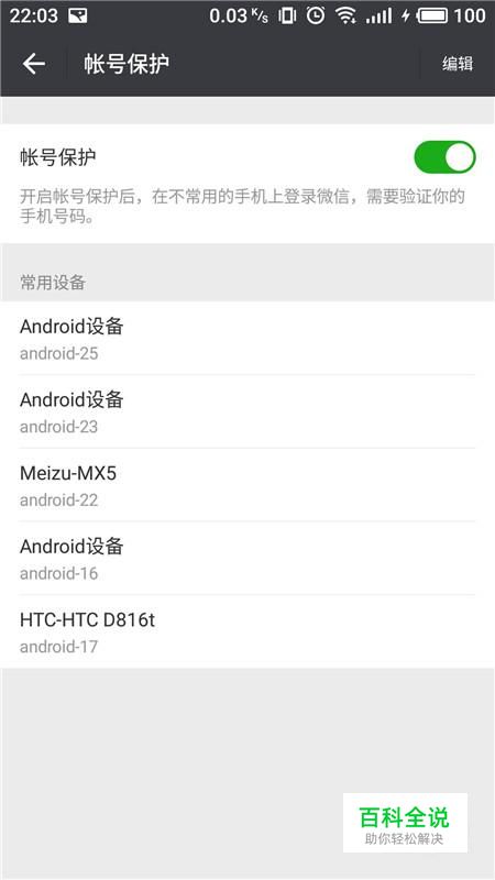 进入帐号保护设置界面,可以查看可使用的设备,将“帐号保护”右侧滑块关闭。