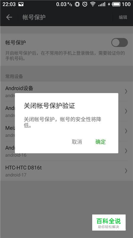 弹框提示确认信息,点击“确定”即可完成操作,关闭帐号保护。