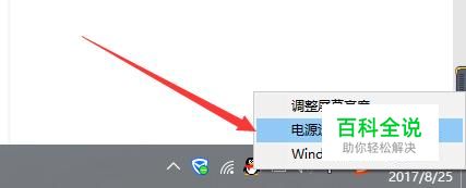 首先用鼠标右键单击系统状态栏下电源,然后选择电源选项。