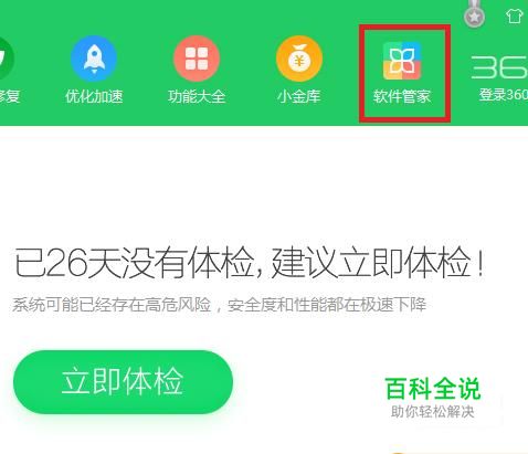 打开360安全卫士,点击“软件管家”。