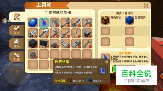 先要使用曙光石块和蓝晶石块合成岩石结晶。