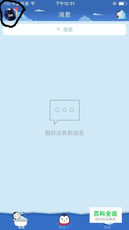 登录手机qq进入消息列表,点击左上角的头像。