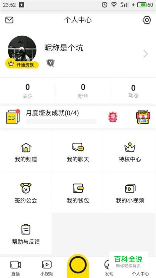 打开yy,选择个人中心,点击下图头像右边的空白处
