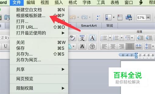 打开一个空白的word文档,点击上方的‘文件’-->‘根据模板新建’