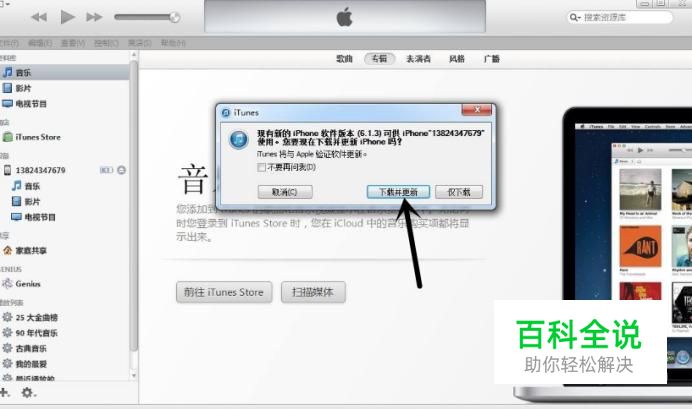 首先我们需要在电脑上下载iTunes,把 iPhone 电脑 连接起来,打开 iTunes 软件,软件会自动检测到设备的更新固件。如果软件检测到了,我们就可以点击“下载并更新”按钮进行更新。