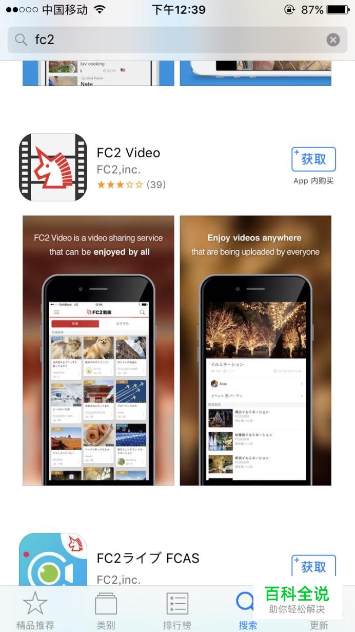 首先在应用商店搜索 FC2手机视频,下载并安装