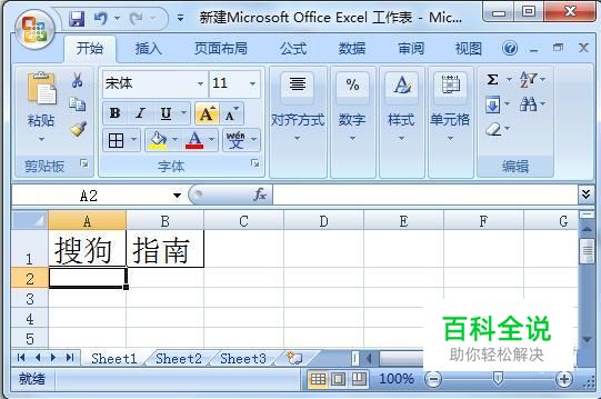 然后点A1格输入“搜狗指南”等字样,如下图所示。