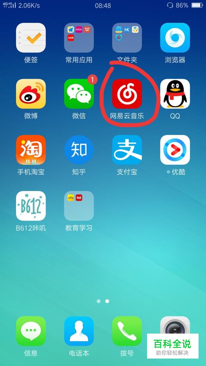 首先,打开手机,找到网易云音乐的图标,点开