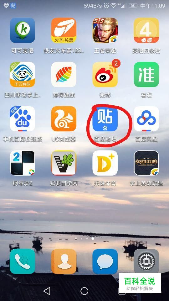 首先点击手机屏幕上的“百度贴吧”,如图所示。