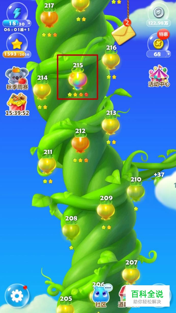 打开开心消消乐软件,找到第215关,点击进入,这里需要提醒你的是,前面的关你得通过,不然你是不能直接就进入到第215关的;