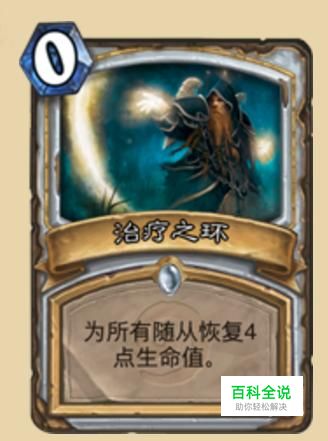 治疗之环,0费给全体随从回复4点血量,在为友方大面积回复时有特别好的效果,配合奥金尼也可能变成对全体随从造成4点伤害,变成很棒的aoe。