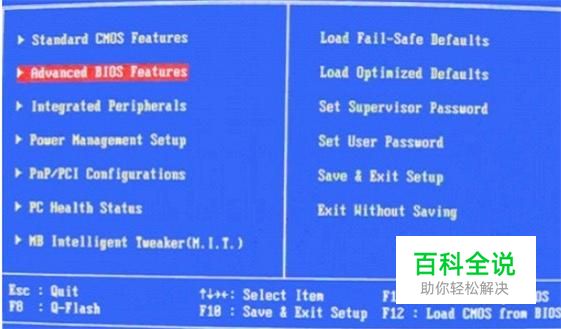 进入BIOS系统界面,如图,基本上就是一个蓝屏幕加一些英文字的界面。