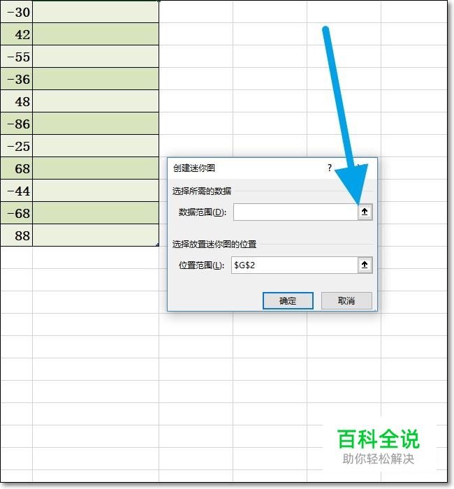 在表格中的数据区域选择我们想要设置迷你图的区域,然后点击折叠按钮。