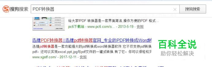 首先在搜狗浏览器中搜索“PDF转换器”,找到对应软件,并将其下载安装到电脑中。