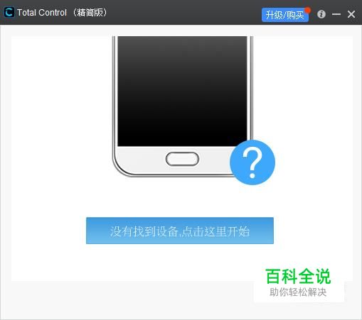 打开Total Control软件,此时提示未检测出任何设备。 原因是我们没有连接手机,点击中间大按钮开始。