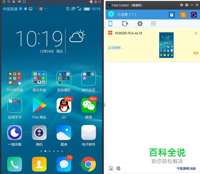 点击连接,我们就可以快速将我们的手机投射到屏幕上了。 注:手机会提示授权,你直接点击授权就好了。(怕隐私被泄露,那你还是三思)