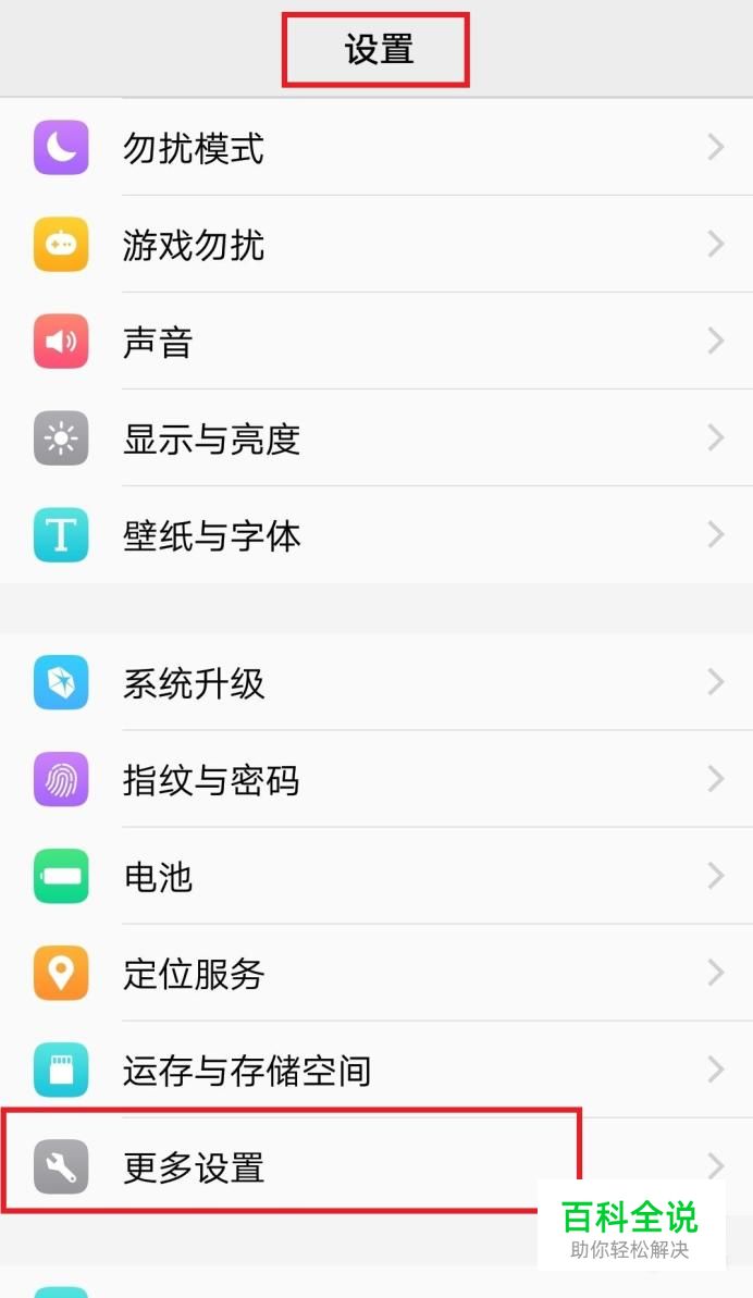 首先我们打开手机的设置,选择更多设置,如下图所示。