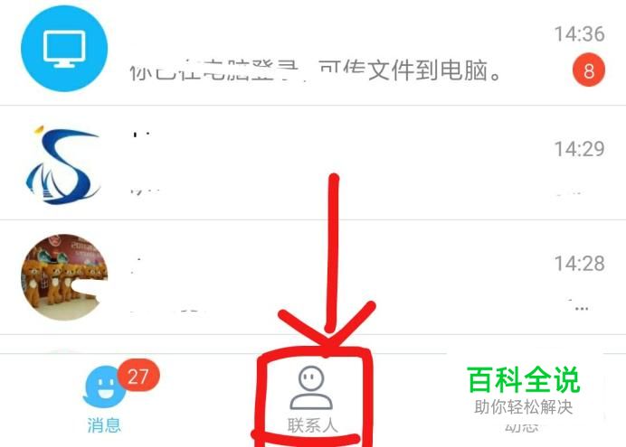 首先打开qq,登录qq,点击QQ主界面下的“联系人”,如下图: