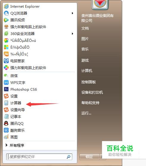 打开电脑,点击开始,找到“计算器”点进入