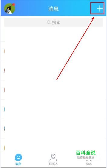 在手机QQ面板上点击右上方的“+”号