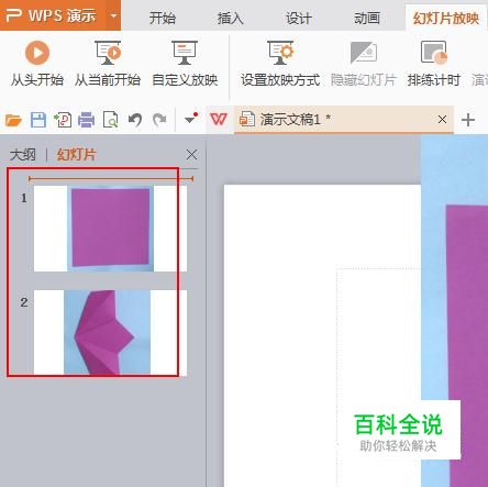 在wps文档的左侧导航栏上点击演示文档的第一页。