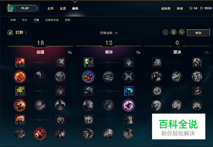 对于天赋的选择小编用的是这一套,凶猛18,诡诈12,前期增强自己的刷野效率,保证了刷野时自身的血量。