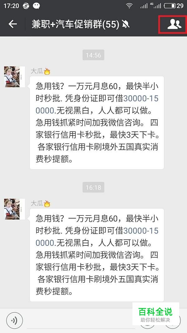 首先进入微信群后,点击“群头像”的图标。