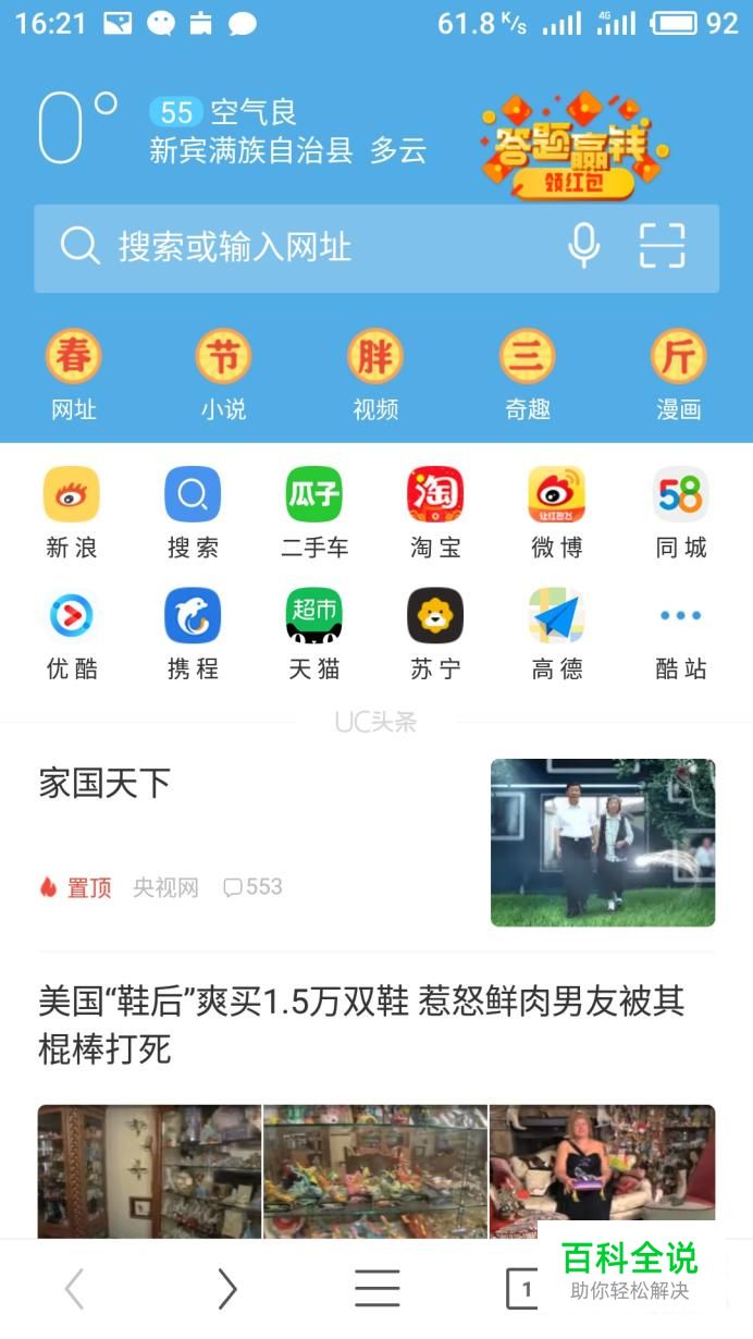 打开手机找到手机中的浏览器,打开浏览器进入浏览器的首页。