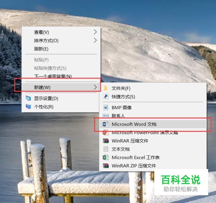 首先,我们在桌面上击右键,选择“新建-Word”文件选项,在桌面上新建一个Word文件。