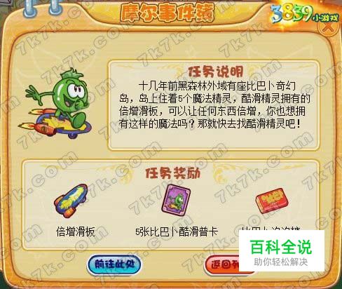 十几年前黑森林外域有座比巴卜奇幻岛,岛上住着5个魔法精灵,酷滑精灵拥有的倍增滑板,可以让任务东西倍增,小摩尔们想拥有这样的魔法吗?那就快去找酷滑精灵吧。完成摩尔庄园奇妙的倍增滑板奖励大家倍增滑板、5张比巴卜酷滑普卡和比巴卡泡泡糖。