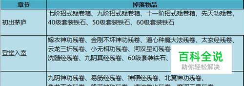 小编为了大家能更直观的了解每个章节对应掉落的物品,特意做了个表格向大家展示,如图: