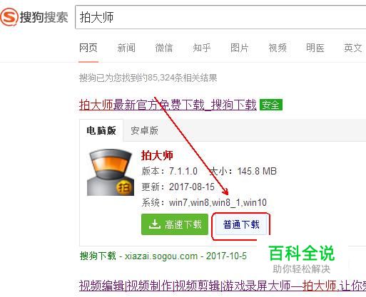 在搜狗下载中对“拍大师”进行下载并安装。