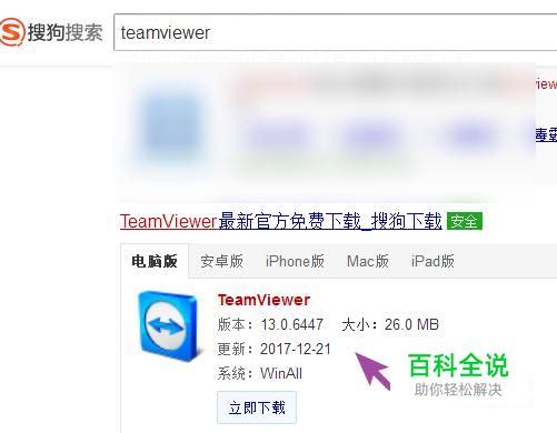 搜狗搜索 teamviewer 选择适合自己设备操作系统的版本。
