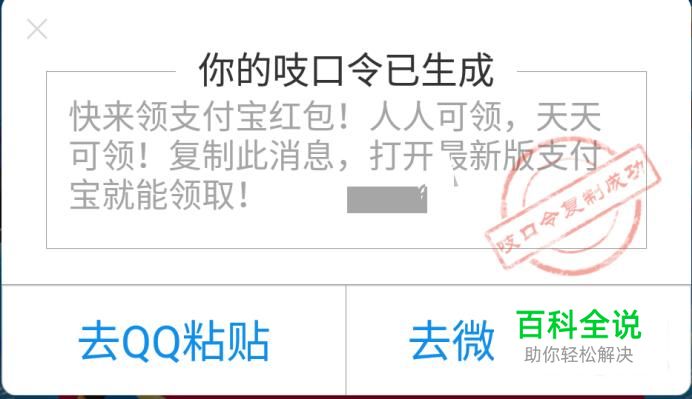 吱口令法。复制朋友在QQ、微信或其它地方发的吱口令,然后打开支付宝即可领取红包。