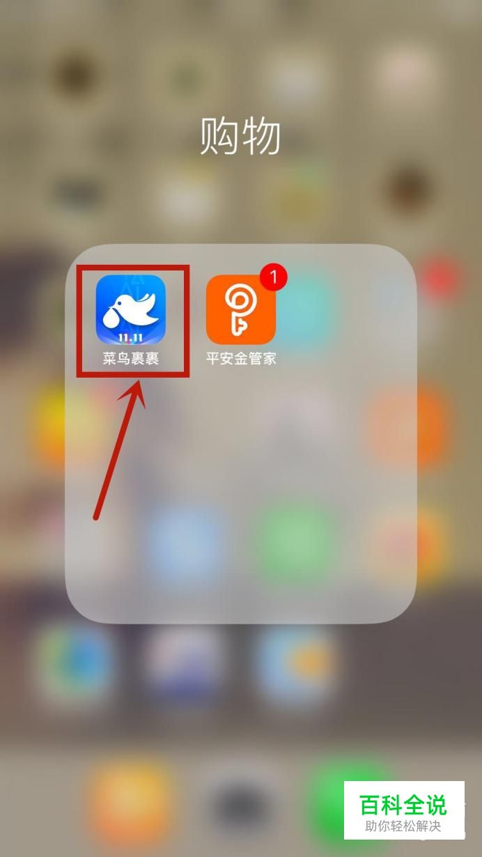 首先手机桌面上找到菜鸟裹裹图标并点击它,如下图所示。 小贴士:为了方便大家找到自己要用的APP,建议把同种类型的APP,放到同一个文件夹。
