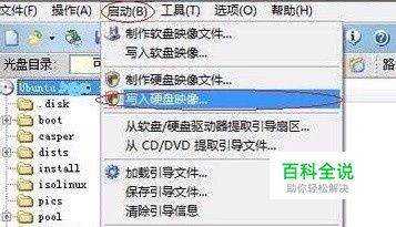 点击 启动选项(记得点开加载后的镜像,使之展开如图) 然后点击 写入硬盘映像选项 点击它进入到将要进行操作的界面
