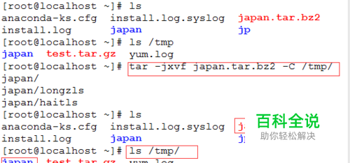 命令格式:tar -jxvf 【压缩包文件名.tar.bz2】 -C 【路径】/ 注释:解压.tar.bz2格式到指定的目录下 例如:tar -zxvf japan.tar.bz2 -C /tmp/