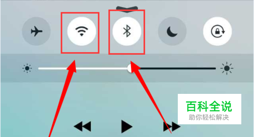 首先打开iPhone6手机,然后在主屏幕上拉控制中心,在弹出的窗口中,点击打开【无线局域网】和【蓝牙】的按钮(点亮图标即为打开状态)。如下图所示。