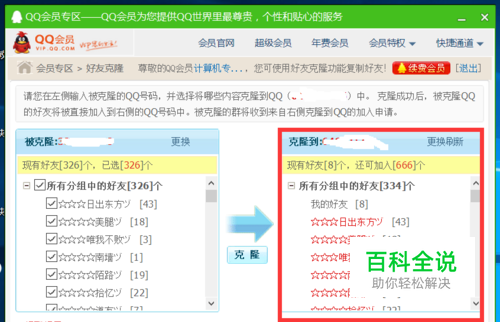 登录号两个账号之后,在左边选择需要克隆的好友和QQ群,点击中间的“克隆”箭头。