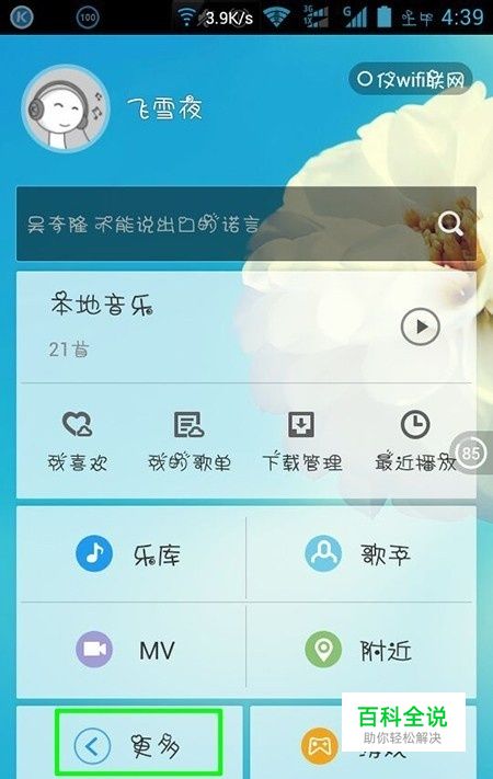 在更多中找到“听歌识曲”按钮,使用这个功能。(打开手机的网络)