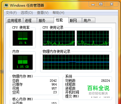 在弹出的windows任务管理器选项卡中选择性能选项,在这里就可以查看电脑的CPU使用情况了。