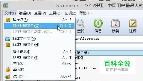 单击“文件”菜单,在弹出的菜单中,选择“打开压缩文件”。 这时弹出“选择要打开的压缩文件”对话框,定位到需要解密的“xlsx”文档所在的文件夹。 这时候,由于默认是打开“常见压缩文件”,因此,所需要的“xlsx”文档暂时不会出现在对话框的列表中。