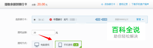 提取余额到银行卡,选择你要提现到的银行卡,再输入金额,值得注意的是电脑上提现是需要手续费的,在手机则不需要,所以这里还是选择手机操作吧!