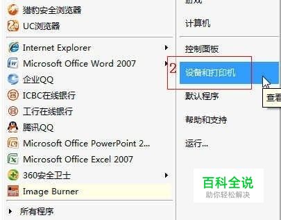 单击“ 开始”-“ 设备和打印机”; 如图: